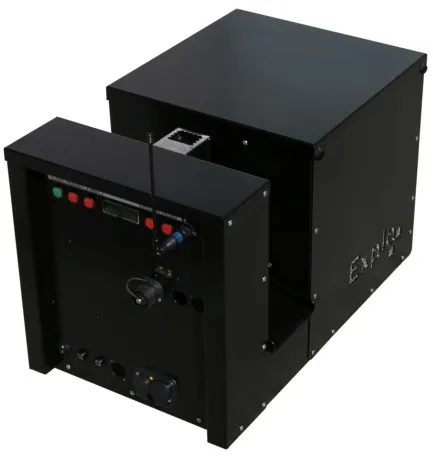 Para facilitar el manejo, el proyector de combustible líquido cuenta con un control de radio bidireccional, un recipiente de combustible extraíble de 10 l, así como una pantalla integrada con menú y botones de control.
